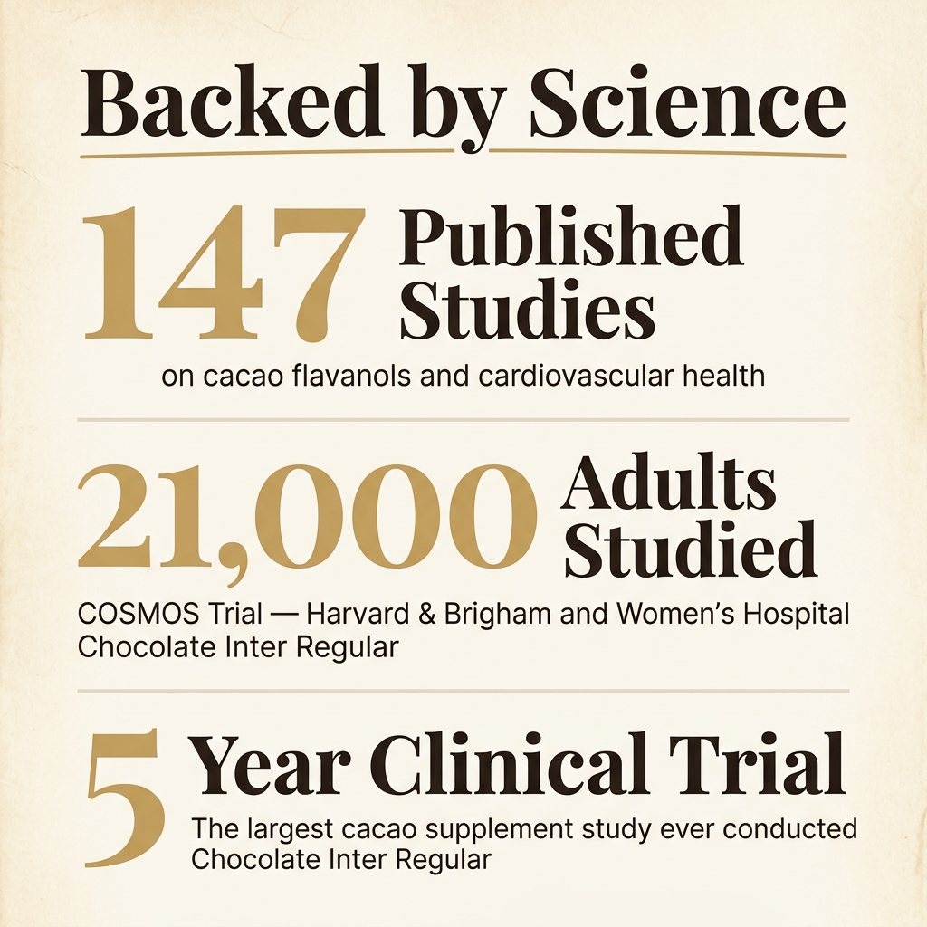 Rich in epicatechin flavanols that support healthy blood pressure and circulation. Backed by the COSMOS study.